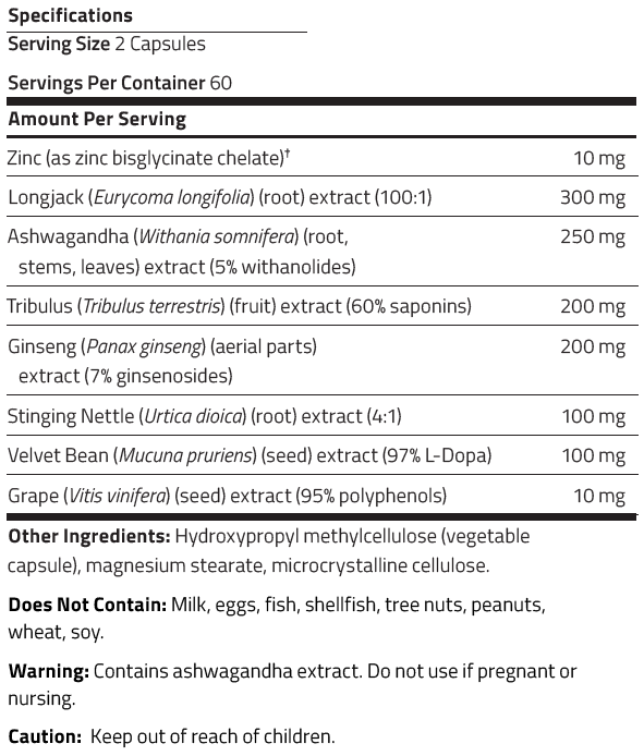 M²'s powerful blend of eight synergistic ingredients designed to help support healthy testosterone levels in men.* Additionally, the select ingredients in this formula have been proven clinically effective in supporting sexual health and energy, promoting healthy cortisol levels and providing dopamine support.*