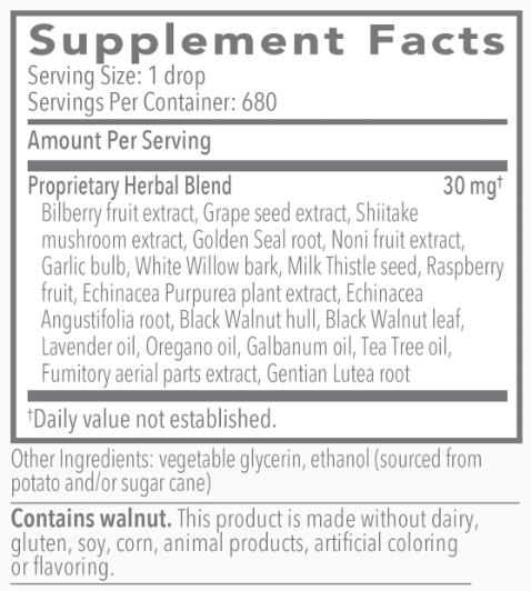 Biocidin® is a synergistic combination of botanicals which target the entire GI tract and supports microbiome balance for healthy digestion and elimination