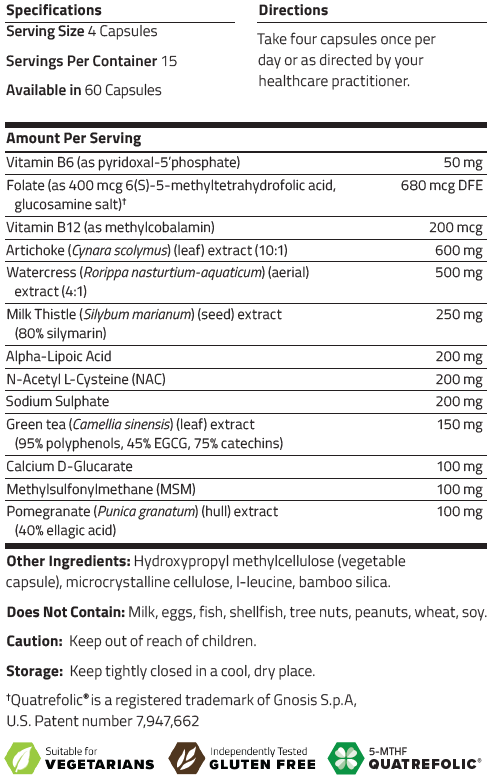 Dual-Tox DPO® is designed to support balanced activity of the body’s Phase I and Phase II detoxification processes. It has been formulated to contain select ingredients, Dual Phase Optimizers (DPO), to enhance the activities of hepatic detoxification enzymes and support healthy detoxification pathways.