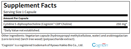 CDP Choline is the product of the rate-limiting step of acetylcholine synthesis. Citicoline has well documented neuroprotective effects. It increases glutathione synthesis, augments glutathione reductase activity, and maintains mitochondrial cardiolipin levels. Citicoline is among the best-studied agents for supporting memory function and healthy cognition.† Citicoline supports memory, attention, and focus.